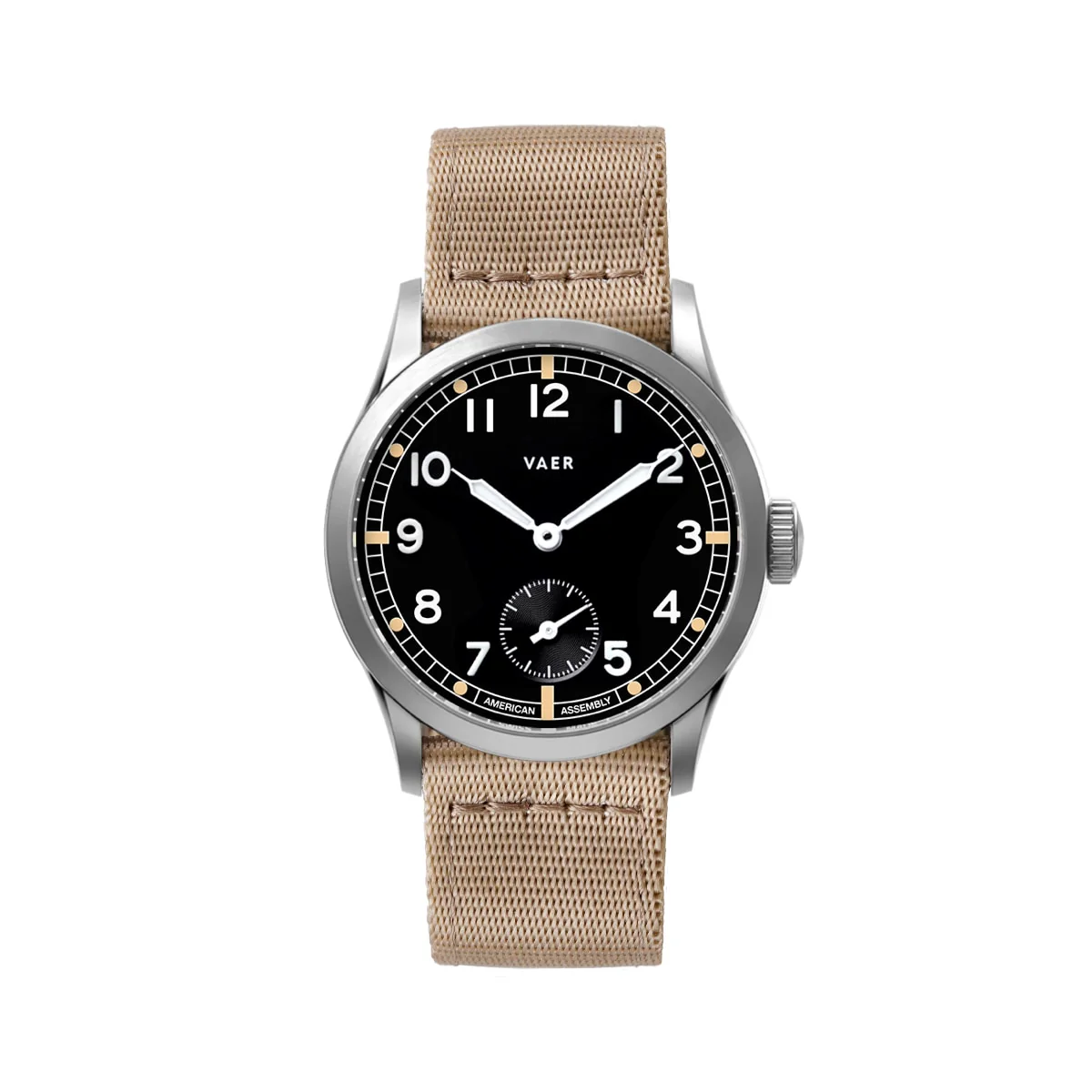 SUMMARY: This is the new Ameriquartz-powered version of our military inspired A12 Dirty Dozen field watch, which was first introduced into the Vaer lineup in 2019. Why have we transitioned to Ameriquartz? If you’ve been following Vaer for a few years, you’ll probably recognize the term Ameriquartz. Between 2020 and 2023, we sold over ten thousand Ameriquartz watches across the C3 and C5 lineup. Last year we transitioned the core of our USA-assembled quartz models (ex. C5 Tactical) to solar movements. However, we always intended to keep the option of a USA-built movement alive within the Vaer lineup. We believe the C3/C5 Dirty Dozen is the perfect design to re-introduce this unique movement option into the Vaer lineup. While it is a quartz watch, and it’s not Swiss, in our opinion, by leveraging hand-built Ameriquartz movements, the C3/C5 Dirty Dozen represent a continuation of the historical craftsmanship of the original World War II models.