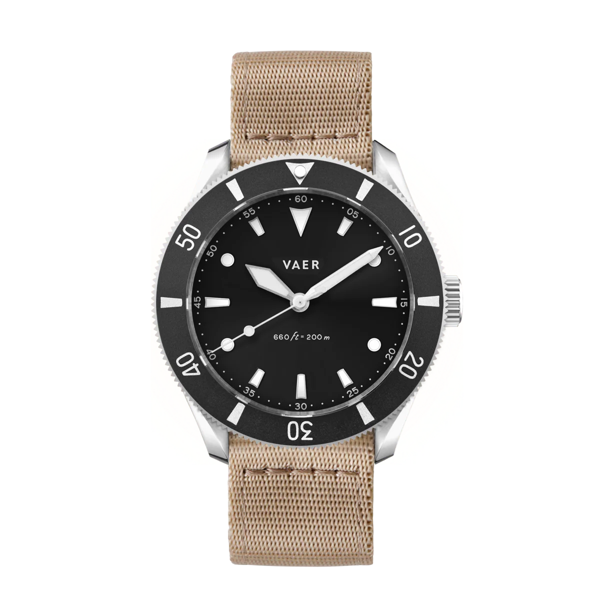INSPIRATION: In designing the DS4 Meridian our goal was to pay homage to the history of military dive watches while also further establishing a distinct and modern Vaer aesthetic. This watch's dial design and bezel are inspired by Rolex and Doxa military divers from the 1970s - and the case is inspired by the military issue Omega Seamaster. The DS4 Meridian Solar is further distinguished as one of the first Vaer field watches powered by ambient light - a premium feature that optimizes its use in remote settings and helps deliver on the promise of near-perpetual timekeeping.