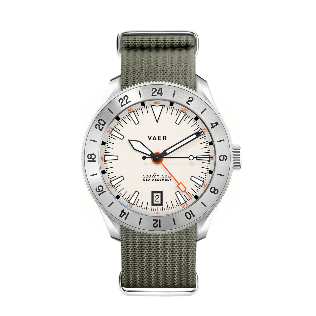 The G2 Meridian is a 1950s-inspired 15ATM GMT watch that offers a more affordable entry into Vaer's GMT-USA-assembled lineup. Powered by a Swiss Ronda quartz GMT movement, this model ensures precision timekeeping across multiple time zones, making it a reliable and cost-effective alternative to the G5 Meridian automatic. The watch features a 39mm brushed stainless steel case, a red/navy aluminum bezel insert, and a sapphire crystal, combining durability with everyday practicality.